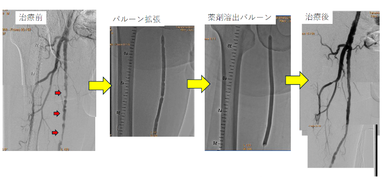 右・浅大腿動脈の高度狭窄を血管内治療(バルーン拡張術)して、歩いても疲れなくなりました。