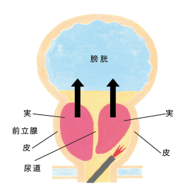 前立腺の細胞が増殖して大きくなり、尿道を圧迫して「尿が出にくい」「切れが悪い」「夜間のトイレが多い」など前立腺がんに似た排尿症状が現れますが、加齢とともによく見られる良性の病気です。前立腺肥大症から前立腺がんになることはありませんが、同時に罹患することはありえます。