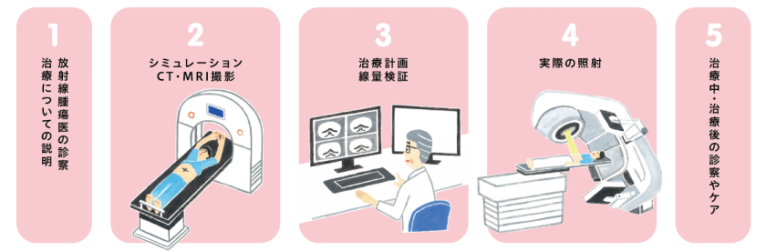 CTやMRIの画像をもとに、どこにどのくらいの放射線を当てるかのプランを立てる「治療計画」が最も重要かつ時間のかかる作業で、早くても数時間、長ければ1日がかりでパソコン上で綿密に計画します。さらにパソコンの計算が本当に正しいかをチェックするための「線量検証」を数日掛かりで行い、ようやく実際に患者さんに照射する段階に入ります。