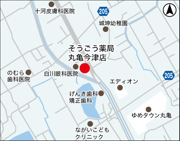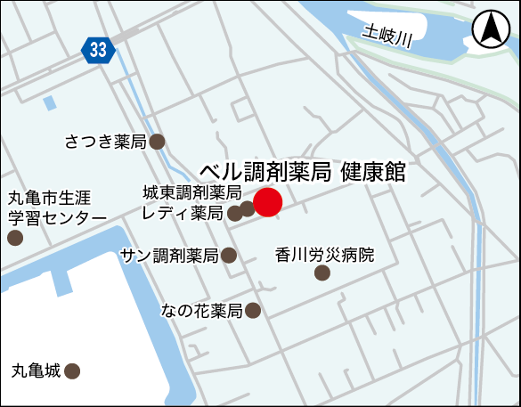 香川労災病院の北側にあります薬局です。労災病院その他の医療機関の処方箋も受け付けております。患者様一人一人の健康をサポートいたします。お薬の相談などお気軽にお立ち寄りください。