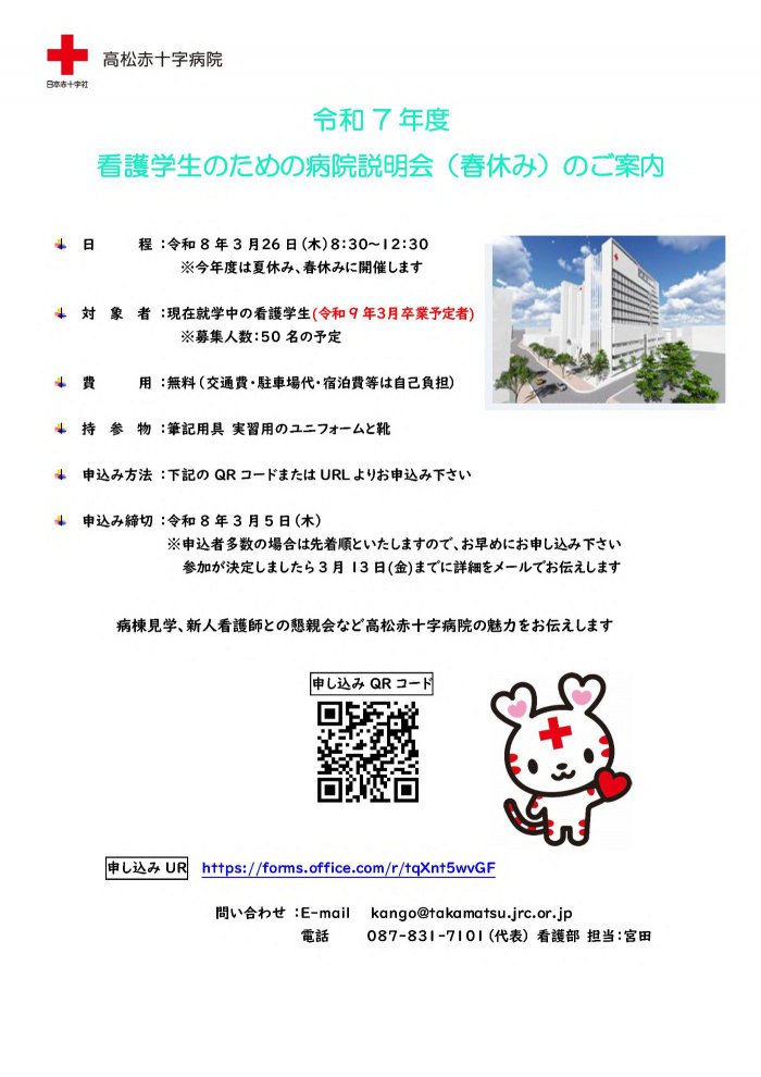 令和7年度 看護学生のための病院説明会(春休み)のご案内